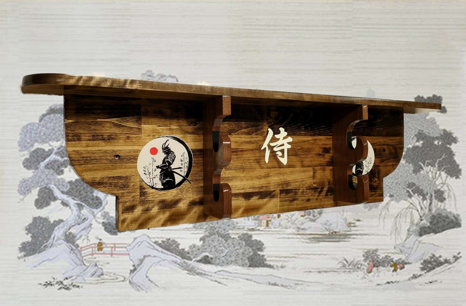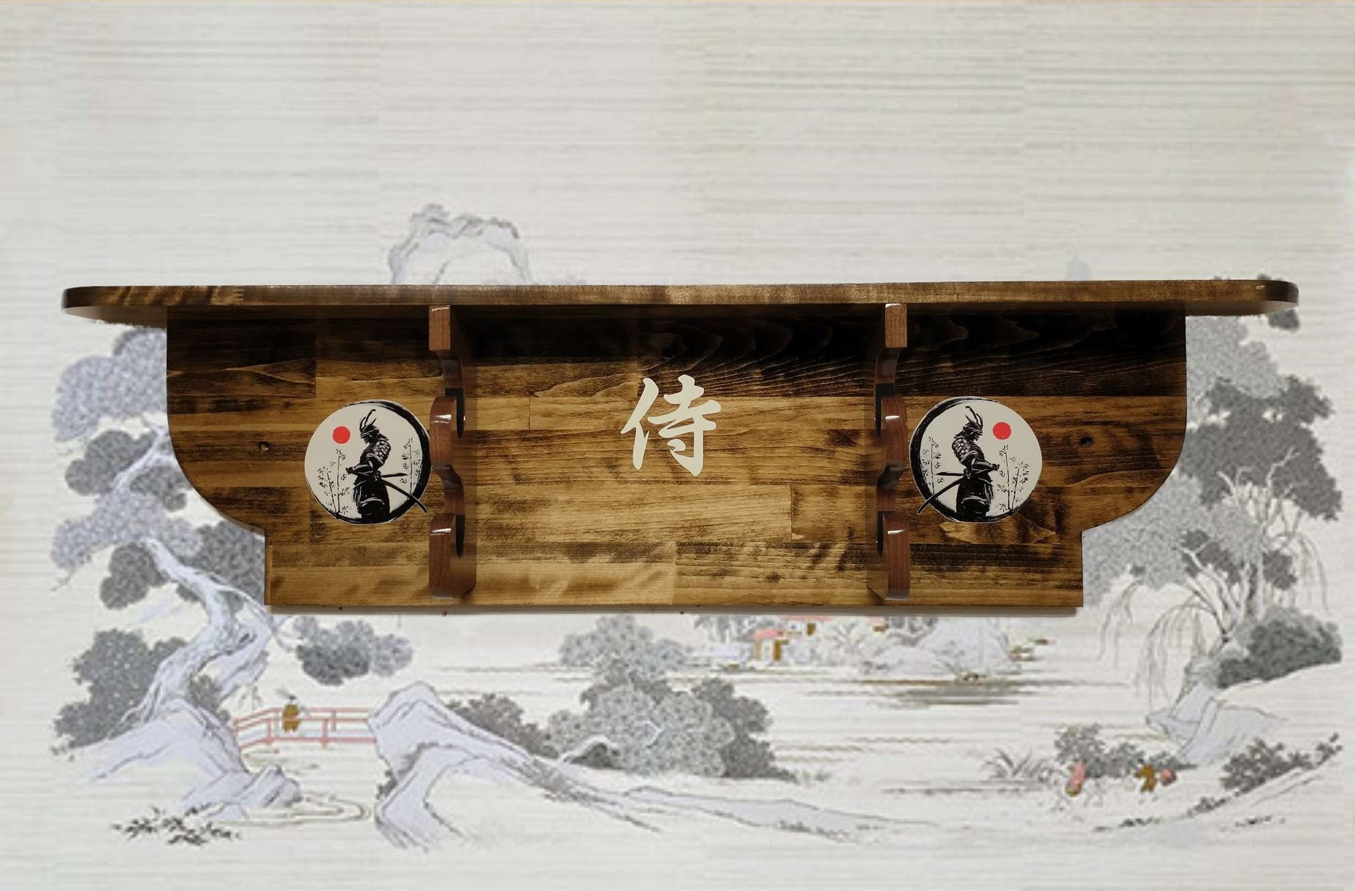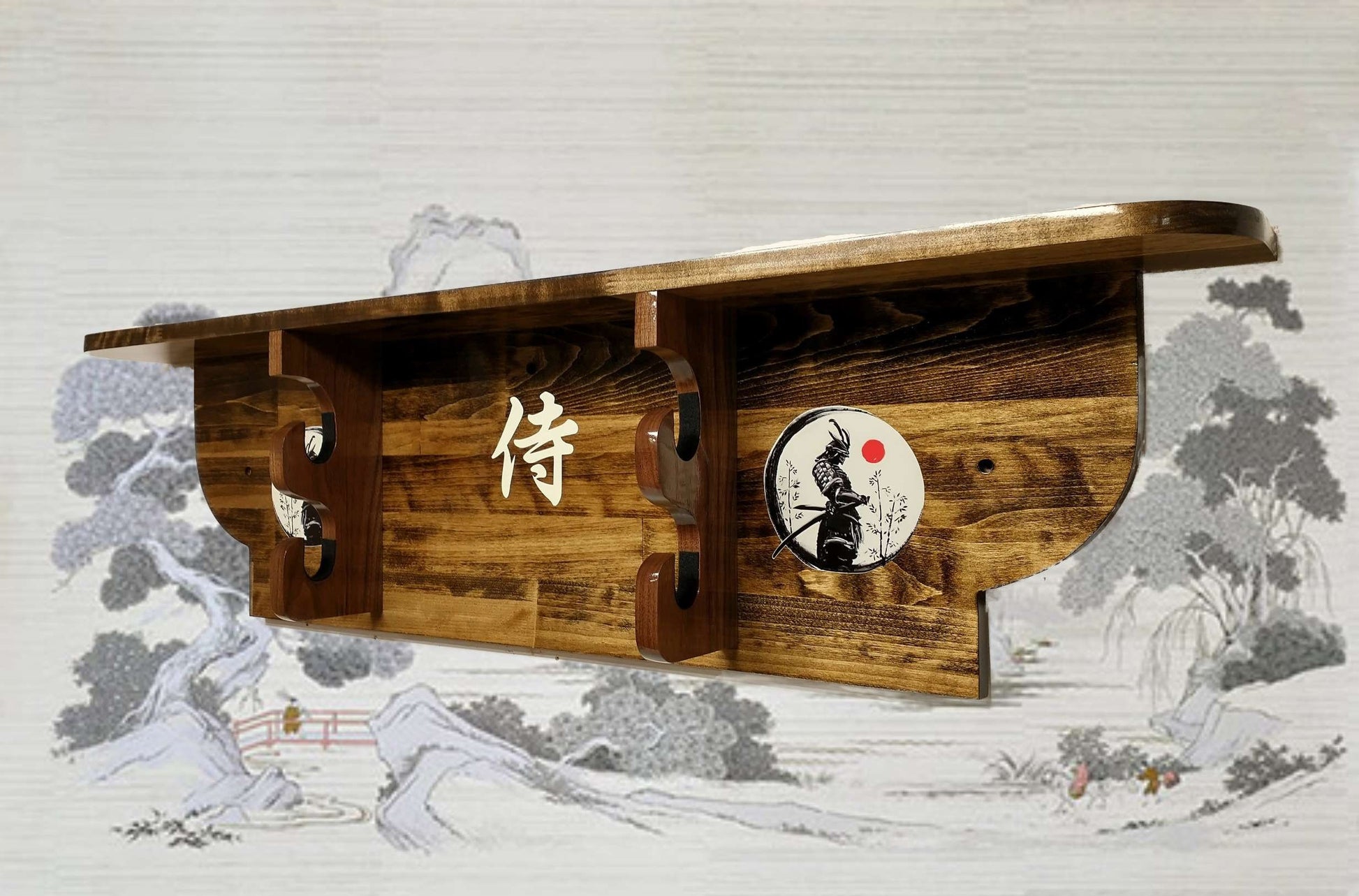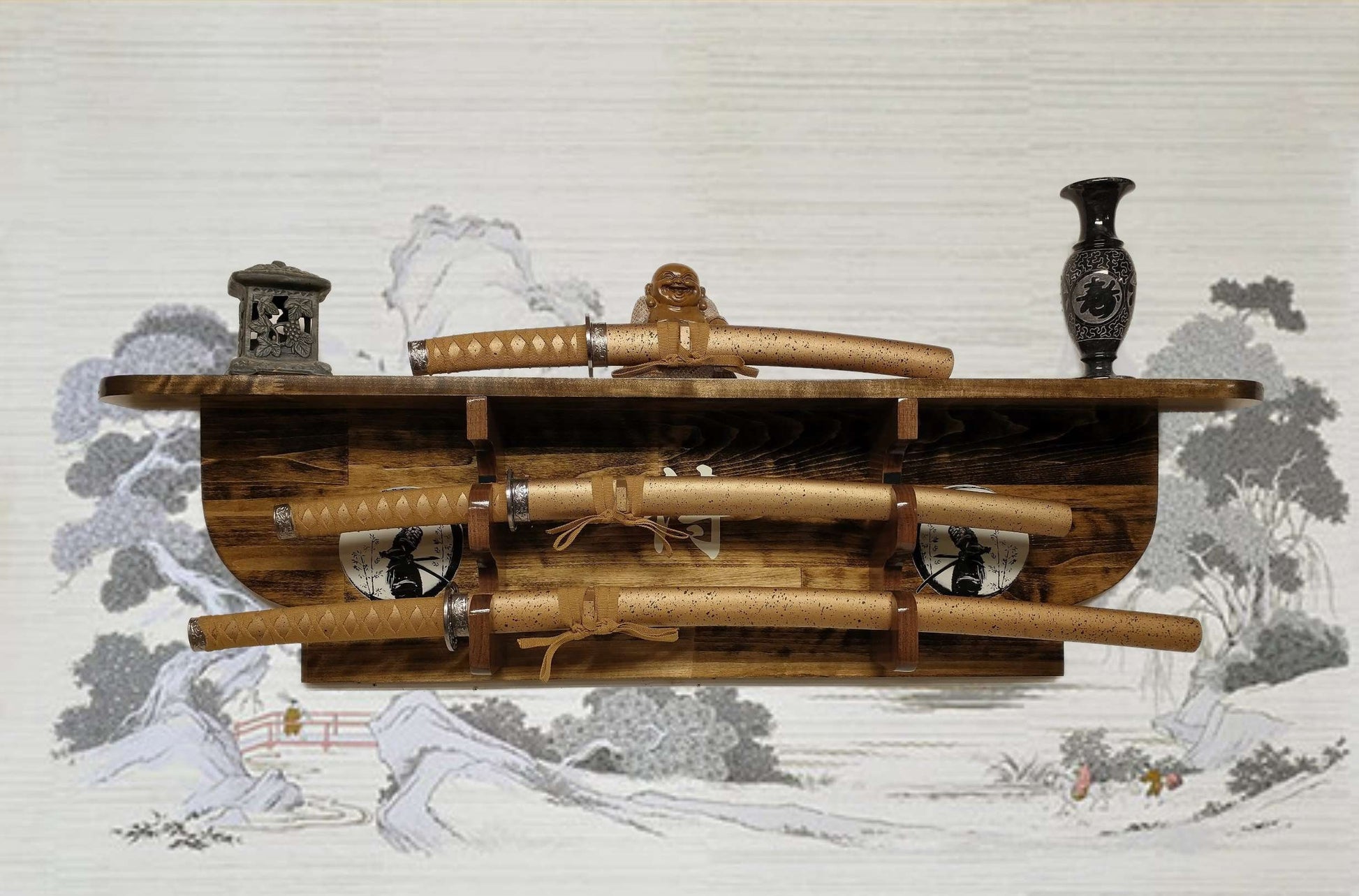 2 Tier Traditional Sword Rack/Shelf Display Beautiful Golden Walnut Bushido Samurai Katana Great Collectors Gift