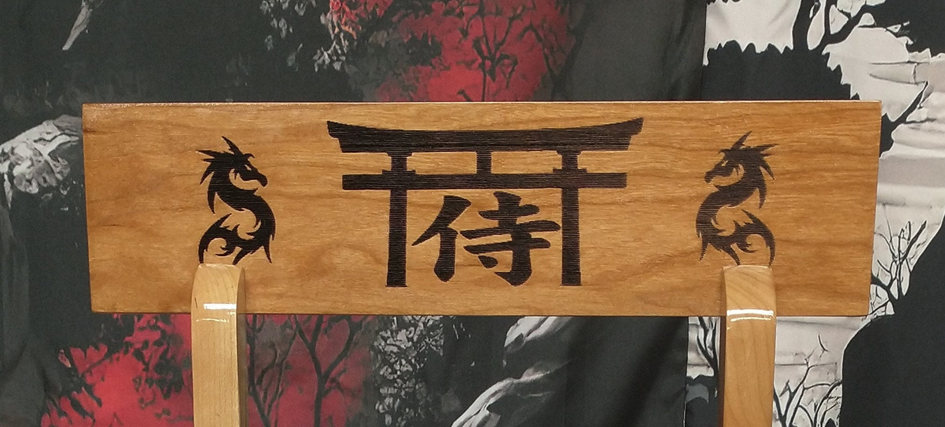Laser Carved Cherry Samurai Dragon Tori Gate Bushido Code Plaque.