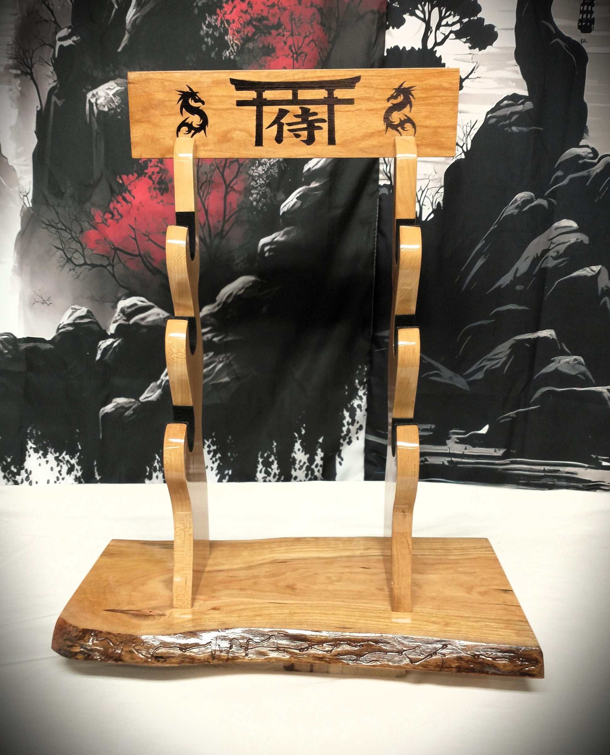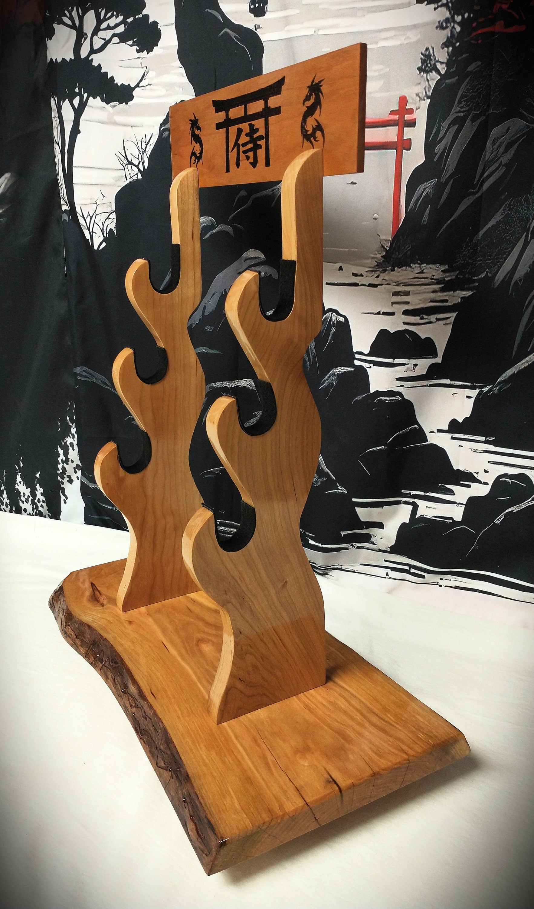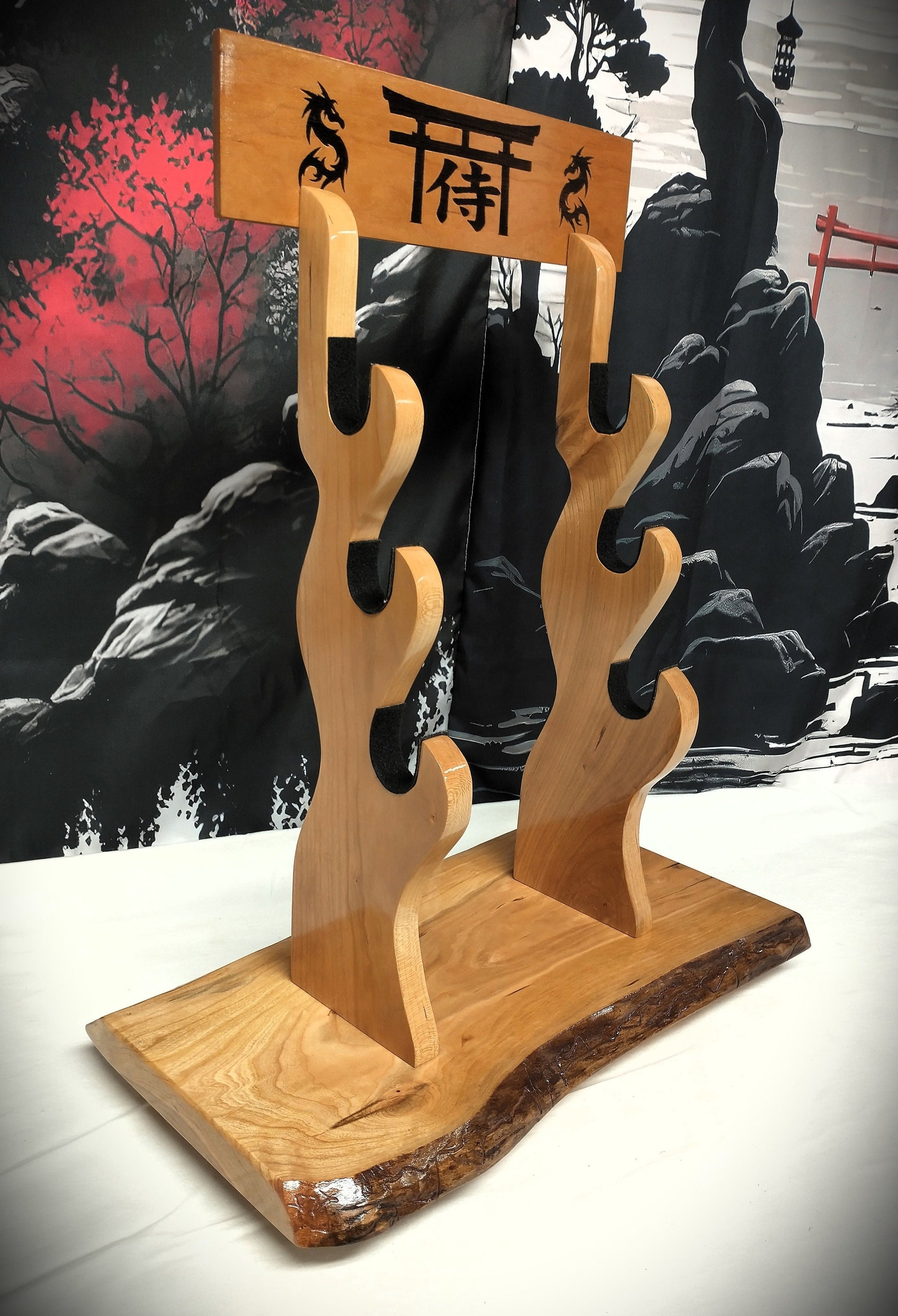 Live Edge Rustic 3 Tier Beautiful Cherry Japanese Samurai Sword Display Stand Collectors Gift