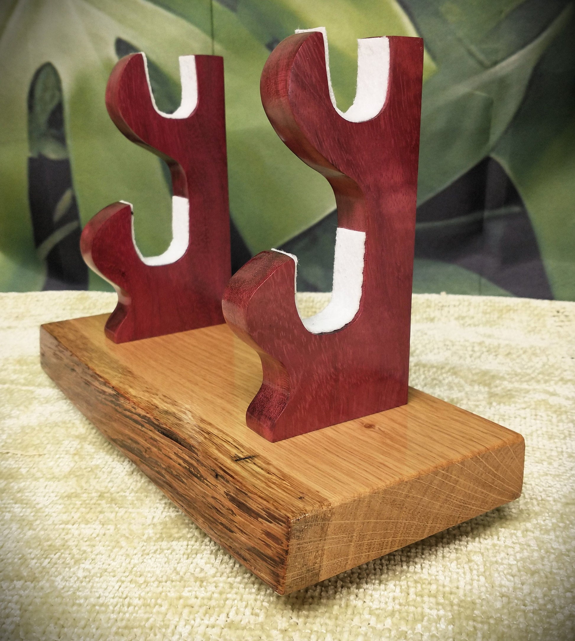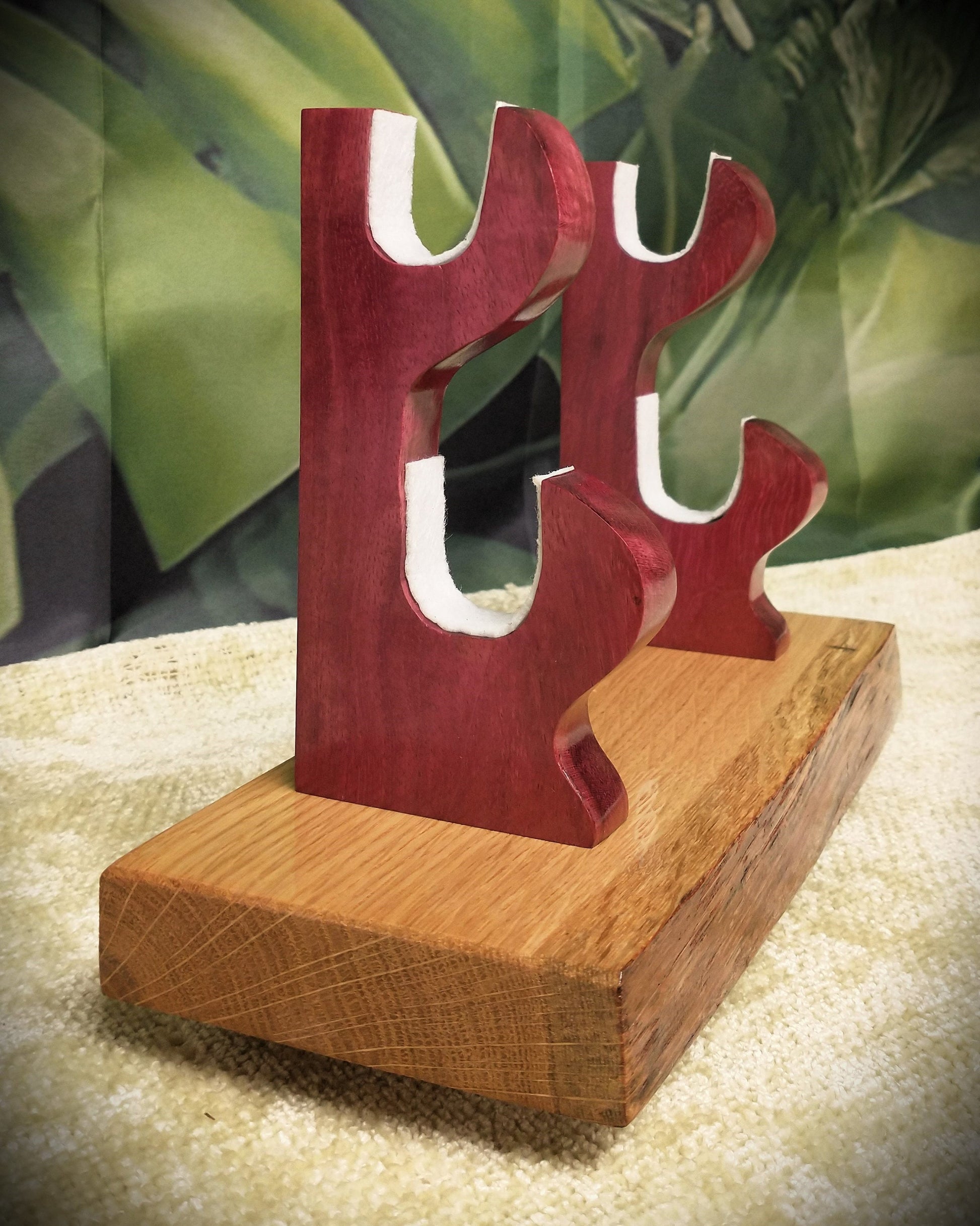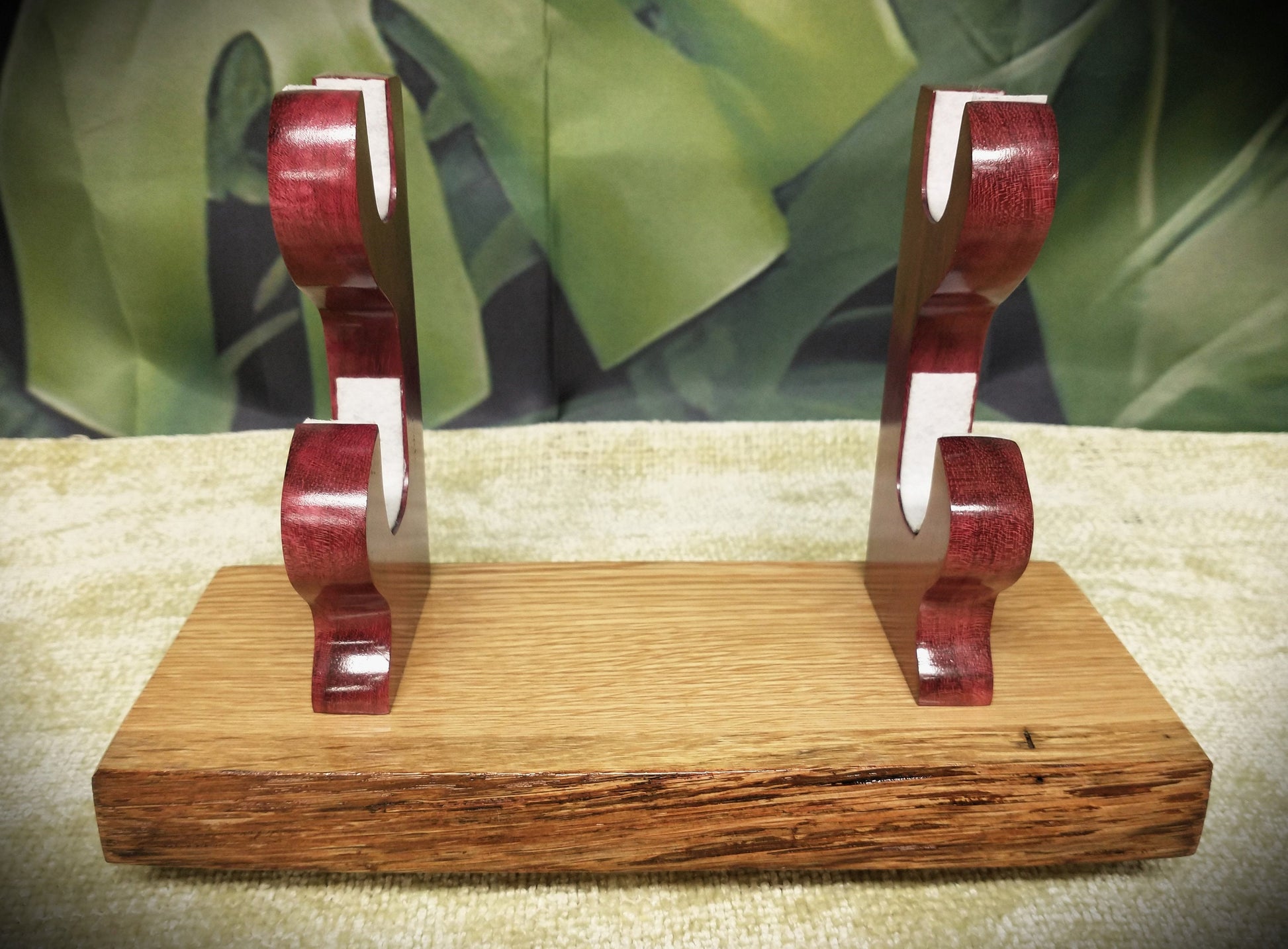 Unique Live Edge Swamp Oak and Purple Heart Sword Stand.