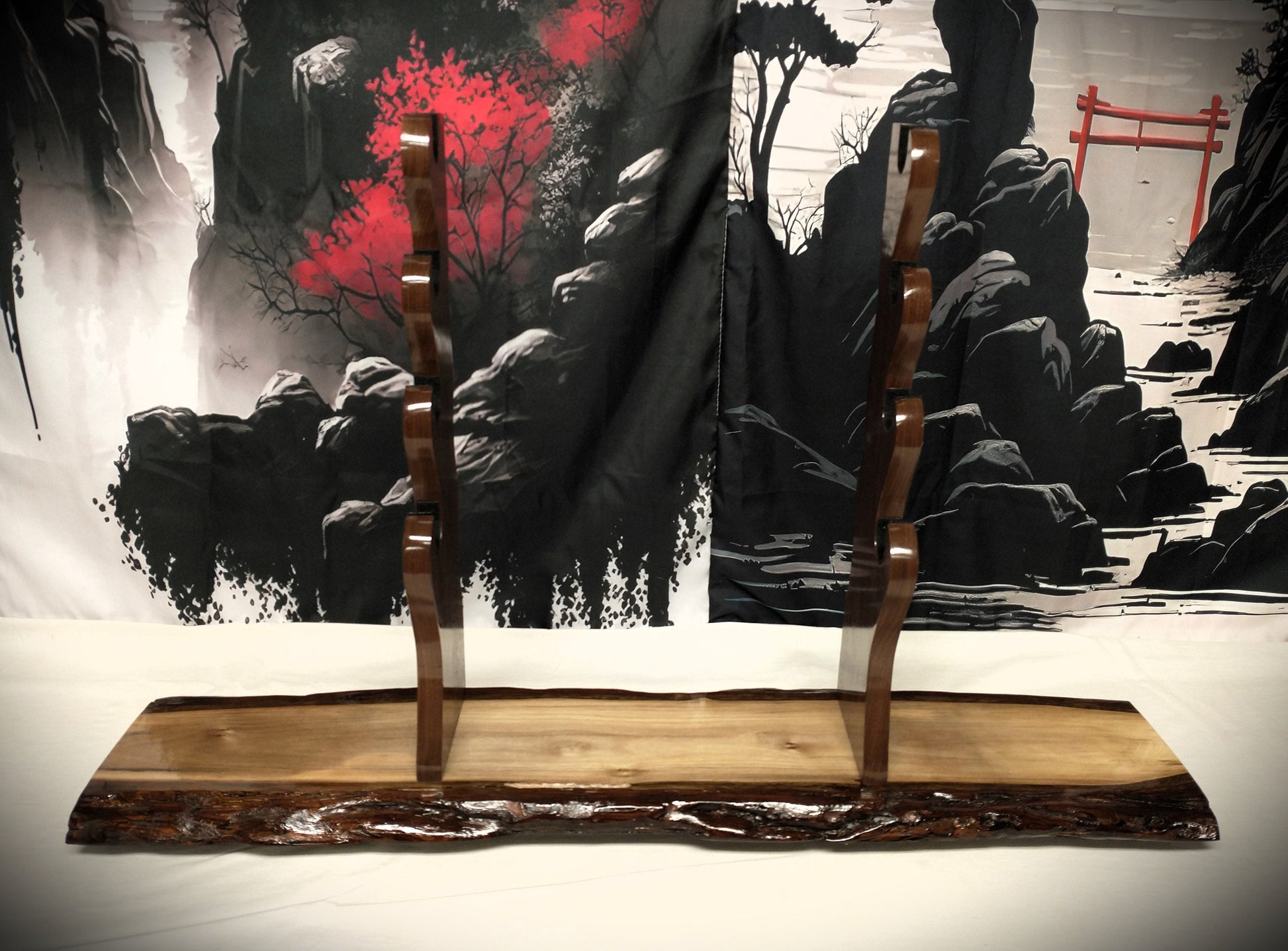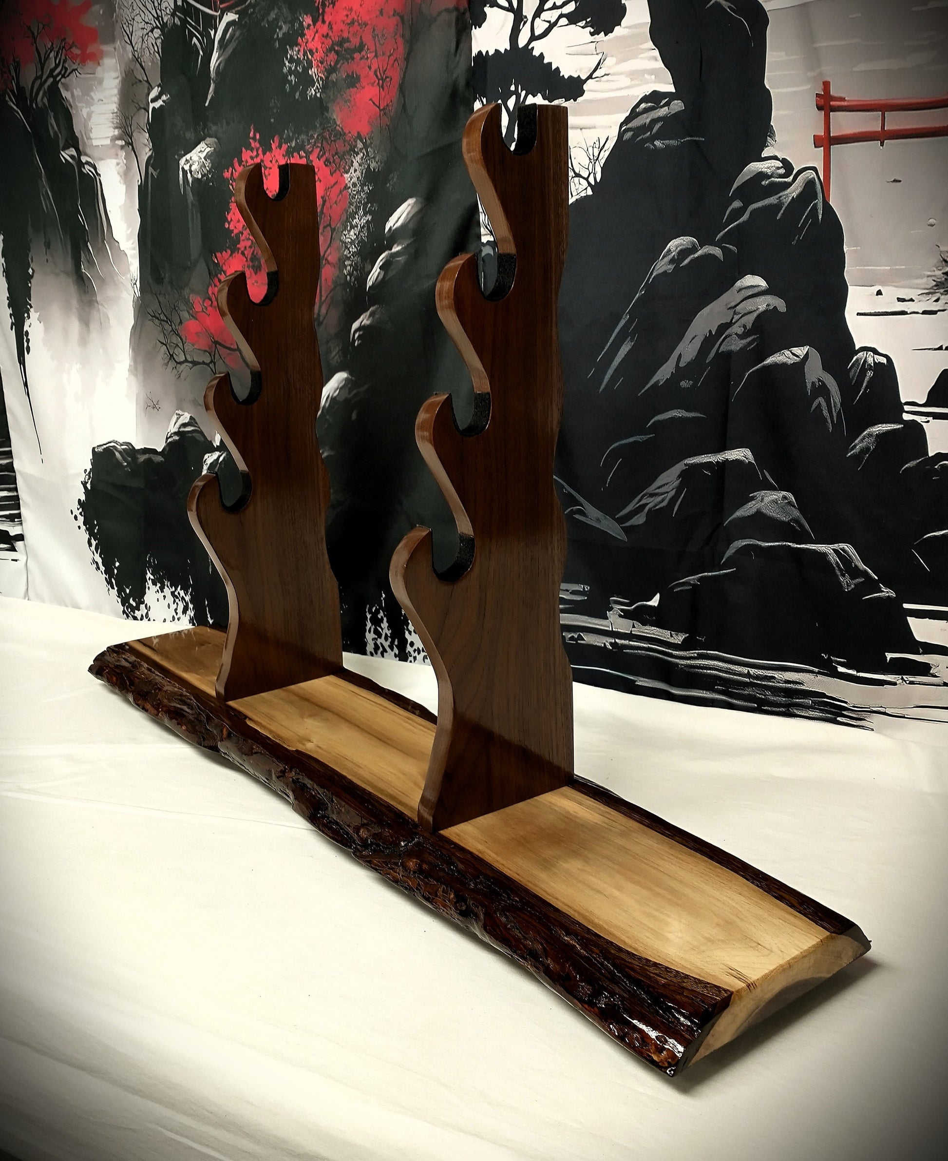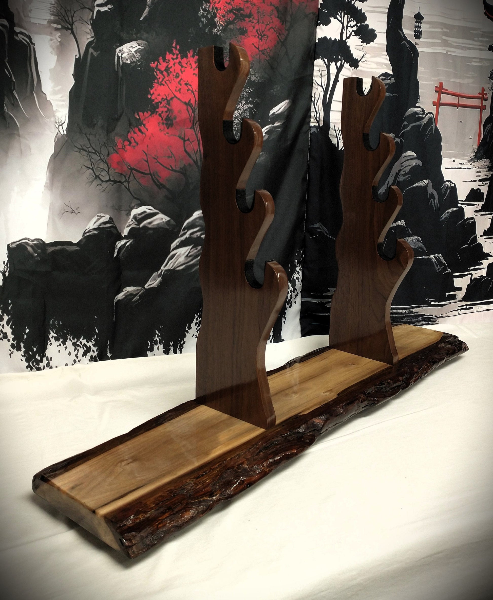 Rustic 4 Tier Dark Walnut Sword Stand Katana Wakizashi Tanto Sword Display Stand Japanese Samurai