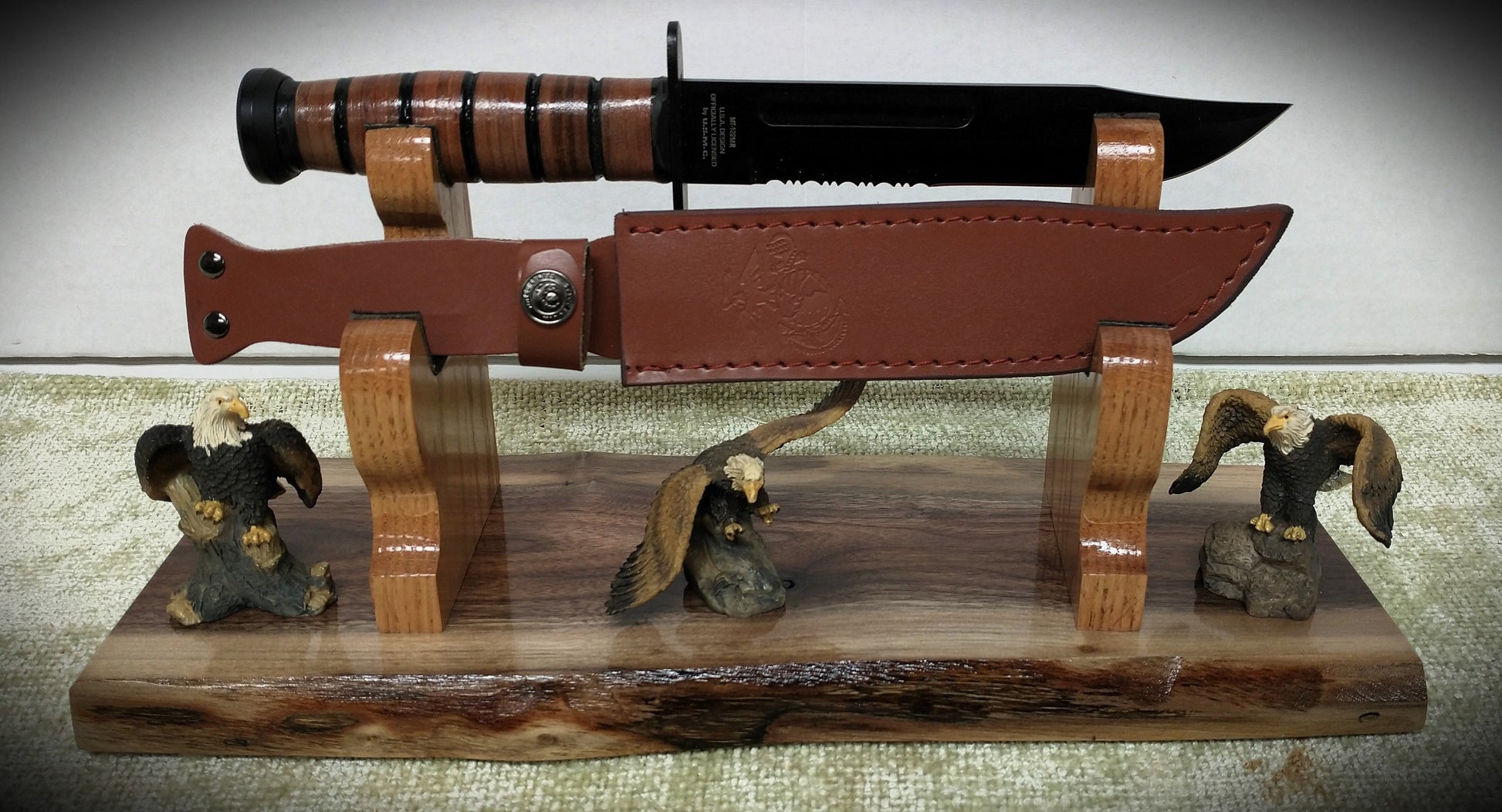 Rustic Live Edge Walnut K-bar, Small Katana, Dagger, Sheath with Blade/Handle Display Stand Collectors Gift