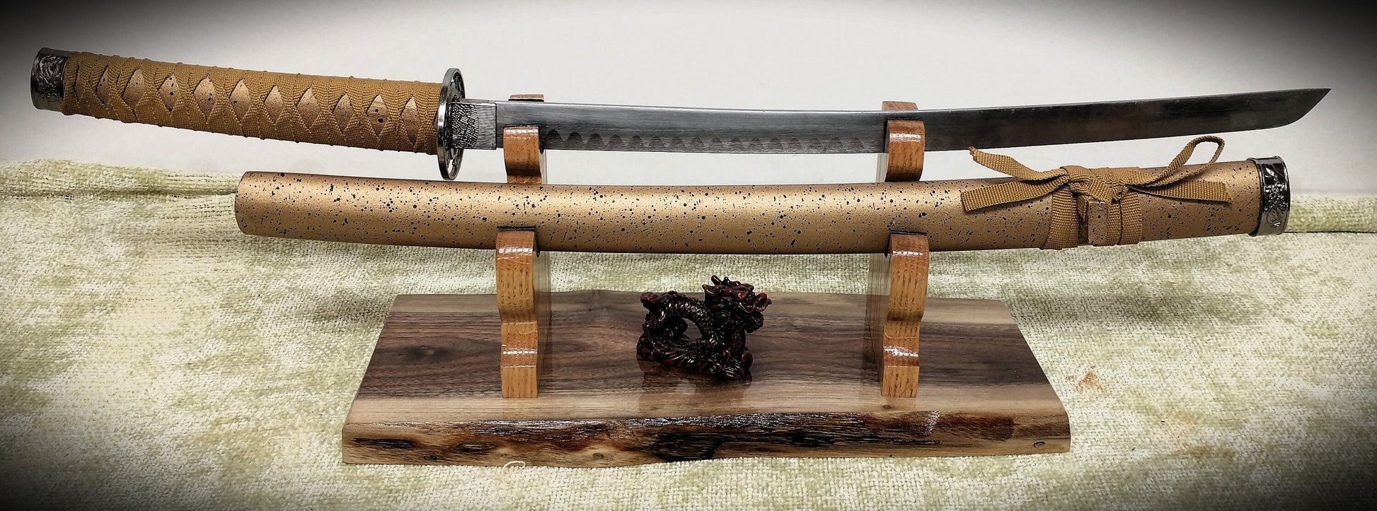 Unique Rustic Live Edge Walnut K-Bar, Small Katana, Dagger, Sheath with Blade/Handle Display