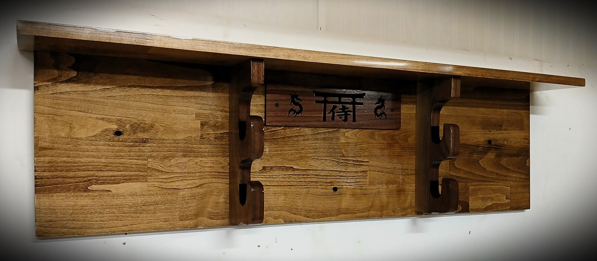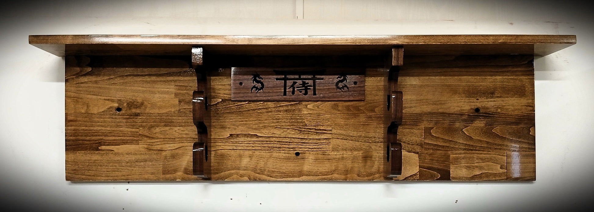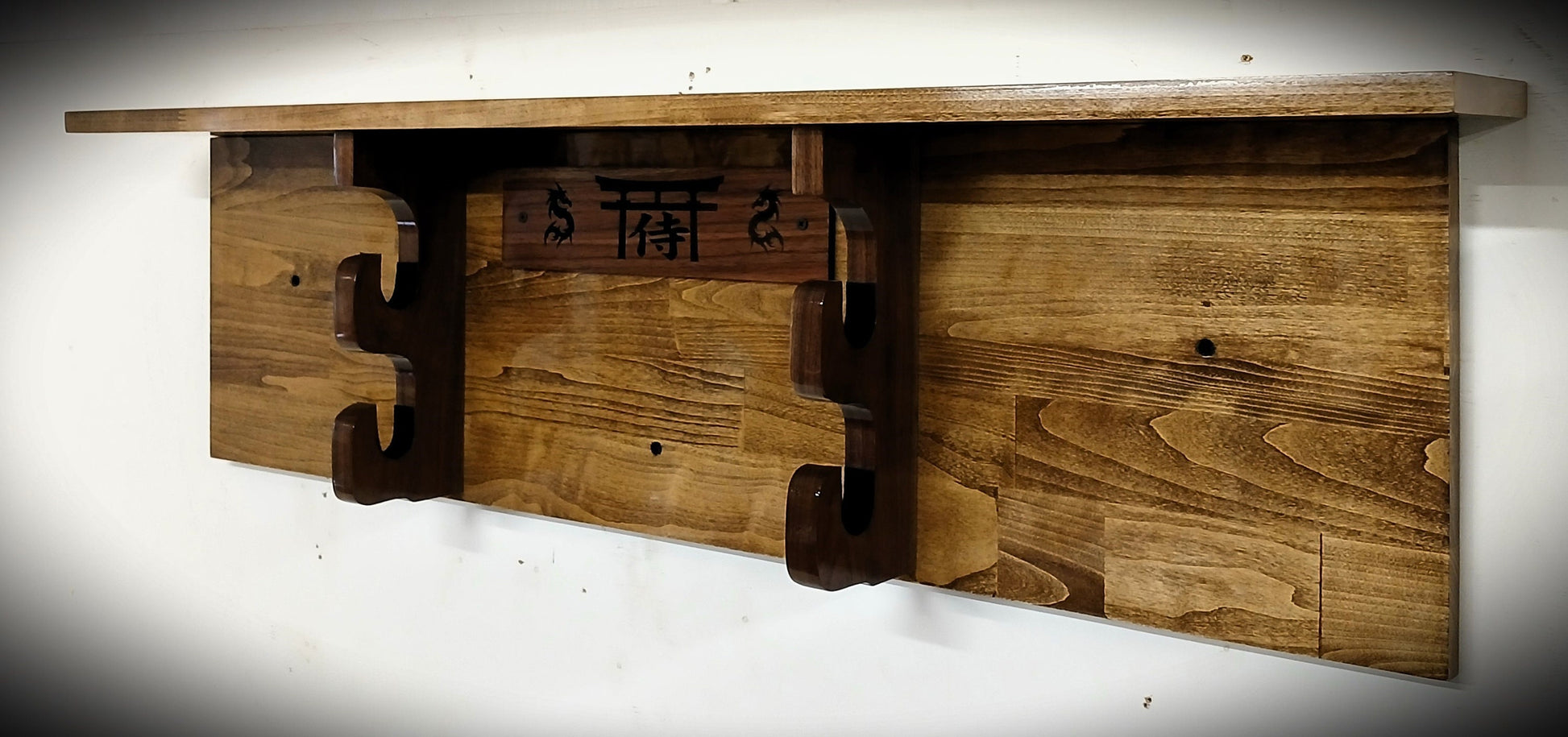 Traditional 2 Tier Sword Rack/Shelf Display Beautiful Walnut Bushido Dragon Samurai Katana Great Collectors Gift